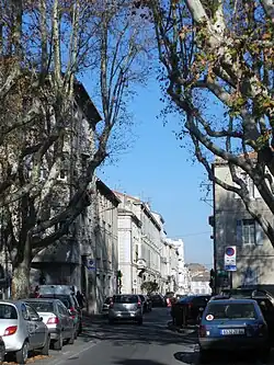 Vue de la rue Guillaume-Puy près du carrefour avec la rue Thiers