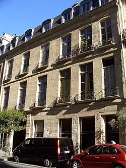 - L'hôtel Dupin. Lorsque Claude Dupin, secrétaire du Roi et fermier général, et son épouse Louise, née de Fontaine, qui sont déjà propriétaires du château de Chenonceau, du marquisat du Blanc et de l'hôtel Lambert achètent, le , l'ancien hôtel de Vins à Bouret pour un montant de 190 000 livres[Note 3], ils y sont installés comme locataires depuis 1741 et avaient auparavant fait effectuer des travaux pendant deux ans. Madame Dupin tient dans cet hôtel un salon littéraire et scientifique des plus brillants[Note 4].