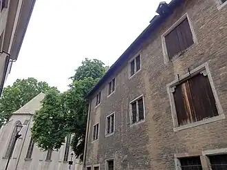 - Connu sous le nom de « grenier de Strasbourg », ce bâtiment en brique, avec un pignon en pan de bois, de plan rectangulaire irrégulier, est orienté nord-sud. Il mesure 19 m de long, le mur nord 7,5 m et le pignon sud 9,5 m. L'origine, la date de construction, le commanditaire et la destination de l'édifice demeurent mal connus. Cependant une étude dendrochronologique a permis de situer la construction dans la première décennie du XVIIe siècle[7].