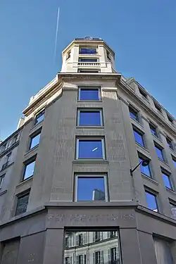 - No 2 (et nos 13 à 15 rue Croix-des-Petits-Champs) : immeuble d'angle mixte (1921 et 1939) de 3800 m2 de bureaux, commerces et logements, à pan coupé et de style Art Déco, construit pour le journal d'annonces judiciaires et légales Les Petites Affiches dont il a abrité les bureaux jusqu'en 2017. L'immeuble a été restructuré de 2018 à 2019[5] (Foncière Montesquieu, maître d'ouvrage; SCAU, architectes; JLL, aménagement et mise aux normes[6]). En , le nom du journal figurait encore au-dessus de la porte située dans le pan coupé.