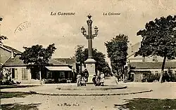 Ce carrefour est orné d'une colonne rostrale, érigée en 1865 en l'honneur du marquis de l'Aigle et de Pierre-Urbain Sartoris, fondateurs du village de La Garenne[2].