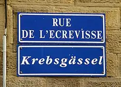Des plaques de rues bilingues, à la fois en français et en alsacien, sont mises en place par la municipalité à partir de 1995[3]. C'est le cas du Krebsgässel.