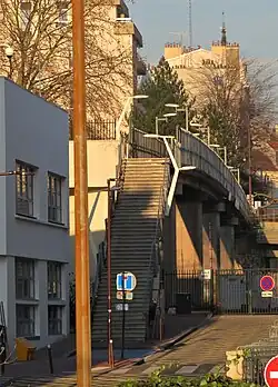 Rue de l'Embarcadère vue du quai des Carrières (lycée Robert-Schumann à droite) | |