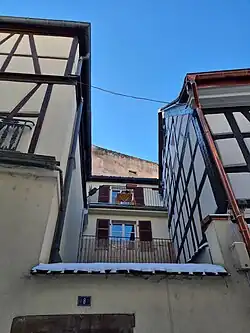 - Cette maison à colombages du XVIIIe siècle, qui jouxte l'école, est dotée d'une porte à imposte donnant sur la rue[1].