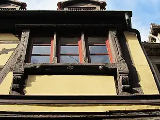 - Cette maison a été reconstruite ou remaniée en 1591, comme en témoignent la date et l'écu armorié côté cour (commune avec le no 29[16]). Côté rue, une fenêtre en bois à chambranle sculpté fait l'objet d'une inscription au titre des monuments historiques depuis 1931[20],[21].