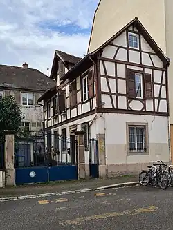 Maison à colombages au no18.Sur l'emplacement de l'actuelle maison à colombages se trouvaient les glacières et la demeure du «sieur Saum» mentionné par Adolphe Seyboth en 1765[8].