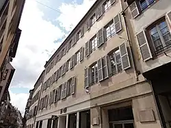 - À l'angle de la rue du Faisan, cette grande maison bourgeoise remaniée au XVIIIe siècle, au moment où le style Régence commence à s'imposer, comporte une façade de trois étages dont les fenêtres ont des chambranles à crossettes et des appuis galbés. Le portail est plein cintre avec un appareil de bossage en diamant[5]. Le rez-de-chaussée a été refait en 1924[4].