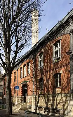 Le bâtiment, une halle métallique avec meulière et brique, est réalisé par l'architecte Auguste Magne en 1876. Il s'agit à l'origine d'un marché, transformé en bains-douches en 1901-1904. S'y installent également un garage municipal et un artisan peintre en décors de théâtre, puis un gymnase municipal[11],[12]. - Nos 298-300 : immeuble de rapport formant un angle, construit en 1911 par l'architecte Constant Coursimault.