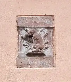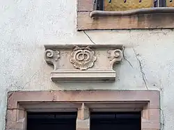 - Selon Adolphe Seyboth, le nom de cette maison, connue sous le nom de Zum Roraffen jusqu'au XVIIIe siècle pourrait trouver son origine dans le patronyme du marchand de laine Jean Rorahe, mentionné dès 1316[2]. L'édifice actuel porte toujours une sculpture encastrée dans le mur au-dessus de la porte. Elle représente un singe accroupi dans les roseaux et croquant un fruit sphérique, pomme ou orange[2]. Le singe et la pomme feraient référence au blason des Affel[6].