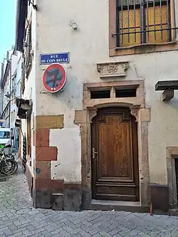 - ↑ « Coin Brûlé (rue du) : im Brand ein End » (Maisons de Strasbourg. Étude historique sur les maisons de Strasbourg entre le XVIe et le XXe siècle)
