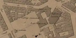 La rue du Collège est tracée dans les anciens jardins du couvent des Capucins, installes là dès 1667[1]. C'est sur le même terrain que sera tracé le Passage de la Bourse en 1892.