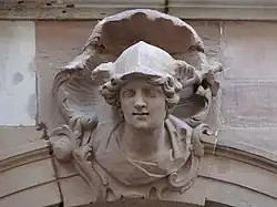La «maison Saré» (parfois Sarré, Sarrez), du nom du négociant Claude Joseph Saré qui l'acquiert en 1752 et entreprend sa reconstruction, présente des points communs avec l'immeuble voisin au no18, en particulier l'architecture de la façade, caractéristique du rococo strasbourgeois qui a, au XVIIIesiècle, les faveurs d'une bourgeoisie nantie[26]. Avec quatre niveaux et quatre travées, elle est entièrement parementée de grès. Le rez-de-chaussée comporte trois arcades. Le balcon du premier étage, de plan curviligne, repose sur des consoles sculptées. Comme les appuis de fenêtre, il est doté d'une grille en fer forgé. Onze mascarons sur cartouches sont répartis sur les trois niveaux. Sur l'arcade centrale se reconnaît Hercule, et à sa gauche une jeune femme qui pourrait être Vénus. Au premier étage se trouvent les Quatre Éléments symbolisés par des dieux: Neptune pour l'eau, Cérès pour la terre, Vulcain pour le feu, Junon pour l'air. Au deuxième étage sont figurées les Quatre Saisons[27].