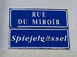 Des plaques de rues bilingues, à la fois en français et en alsacien, ont été mises en place par la municipalité à partir de 1995[3]. C'est le cas du Spiejelgässel.