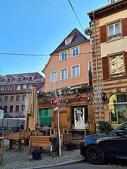 - À l'angle avec le no 2 de la rue du Sanglier, l'édifice conserve quelques éléments datant du Moyen Âge[2]. Un restaurant, Zum goldenen Lamm, y est mentionné en 1686[7].