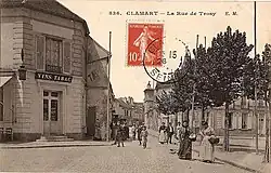 La rue du Trosy et la place de la Mairie en 1908. | |