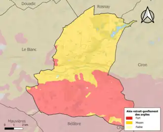 Le retrait-gonflement des sols argileux est susceptible d'engendrer des dommages importants aux bâtiments en cas d’alternance de périodes de sécheresse et de pluie. 99,2 % de la superficie communale est en aléa moyen ou fort (84,7 % au niveau départemental et 48,5 % au niveau national). Sur les 348 bâtiments dénombrés sur la commune en 2019, 347 sont en aléa moyen ou fort, soit 100 %, à comparer aux 86 % au niveau départemental et 54 % au niveau national. Une cartographie de l'exposition du territoire national au retrait gonflement des sols argileux est disponible sur le site du BRGM[22],[23].