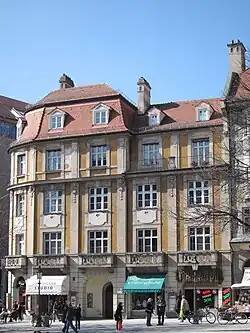 À la fin du Moyen Âge, un développement à petite échelle a été initialement construit sur la propriété, qui à partir de 1708 ou 1721 est entrée en possession de seulement deux familles, les Püttrich et les Ruffini. Il s'agissait d'un ensemble unifié de quatre étages de style baroque, érigé autour de 1800. Il y avait un grand nombre de petits magasins dedans. Dans le cadre d'un nouvel agrandissement de la rue, la ville a acheté la propriété en 1898 et a annoncé un concours d'architecture. Gabriel von Seidl a prévalu contre la conception d'un grand magasin, qui proposait un développement en bloc sous le nom de «Drei Häuser» (Trois Maisons), qui donne l'impression d'une substance à petite échelle et reprend les magasins individuels de l'ensemble précédent.