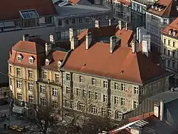 La maison d'angle au sud-ouest est de style baroque tardif. Une baie vitrée avec une loggia au sud sépare le bâtiment du voisin. À l'origine, le bâtiment d'angle avait deux pignons à volutes, qui n'ont pas été reconstruits après la Seconde Guerre mondiale.