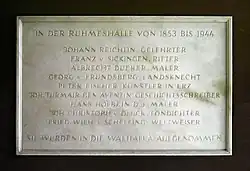 En , l'ancien ministre de l'Intérieur et écrivain Eduard von Schenk dépose à Louis, qui a été couronné entretemps, une liste des Bavarois les plus illustres, qui complète celle déjà réalisé par Hofmayr[3].