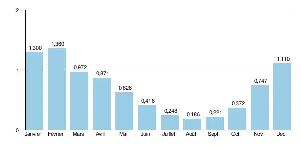 À l'étiage, le VCN3 peut chuter jusque 0,026 m3, soit 26 litres par seconde, en cas de période quinquennale sèche.
