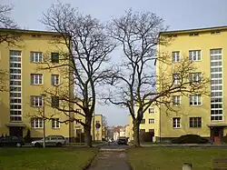 624 appartements ont été créés avec onze plans d'étage de tailles différentes et toujours conçus avec l'aspect de conditions d'éclairage optimales à l'esprit, par exemple pas de pièces à vivre orientées au nord[5]. La Siegfriedplatz au centre du complexe, planifiée par le directeur du jardin municipal Nikolaus Molzen (1881–1954), a reçu une grande pataugeoire pour les enfants de la colonie[6]. Selon la planification originale, une église ou un autre bâtiment spécial devait être érigé ici[7].