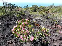 - sur les roches volcaniques : colonisation végétale des coulées de lave et des cinérites comme décrit sur l'île volcanique de Krakatoa [16];