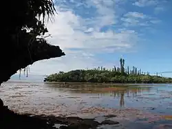 - sur les substrats rocheux littoraux où sel et inondation jouent un rôle majeur : falaises et platiers rocheux submersibles ; exemple des mangroves sur substrat rocheux du Gabon[17],[18], des mangroves sur platier corallien des Fidji (photo) ou des « forêts littorales à faciès rupicole sur coraux et basaltes soulevés » de Nouvelle-Calédonie (photo) et de Wallis[19] ;