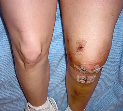 Ces symptômes ont déjà été décrits en 1879 par le Français Paul Segond (1851–1912) : forte douleur dans l'intérieur du genou et saignement intérieur rapide avec enflure correspondante de l'articulation[77]. La cause de ces symptômes est la lésion des fibres nerveuses et des vaisseaux qui courent le long des ligaments. Les premières déclenchent une douleur lors de la déchirure, et les secondes créent l'hémorragie interne de l'articulation.
