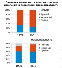 Néanmoins, à la suite des événements de l'Euromaïdan en 2013, suivi de l'annexion illégale de la Crimée par la Russie en , un recul net de l'influence russe se manifeste désormais en Ukraine, amplifié par l'intensification de la guerre russo-ukrainienne à partir du [37],[38]. Ces évènements s'accompagnent notamment d'une chute drastique de la pratique du russe en Ukraine par la population, mouvement en profonde accélération. Elle se double également d'un recul des marqueurs culturels russe, qui touche en particulier les œuvres artistiques et littéraires (dont certaines sont déréférencées dans les bibliothèques), mais aussi le paysage mémoriel, qui connaît un mouvement de décommémoration (déboulonnage de statues comme celle du poète Alexandre Pouchkine, jugé partisan de l'impérialisme russe, ou modification de noms de rues). La pratique de l'ukrainien s'apparente pour la population ukrainienne à un acte de résistance nationale et d'affirmation de son identité[35],[37],[39].