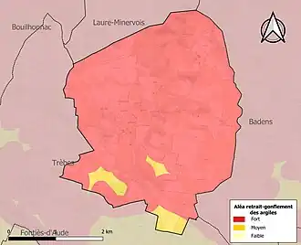 Le retrait-gonflement des sols argileux est susceptible d'engendrer des dommages importants aux bâtiments en cas d’alternance de périodes de sécheresse et de pluie. La totalité de la commune est en aléa moyen ou fort (75,2 % au niveau départemental et 48,5 % au niveau national). Sur les 219 bâtiments dénombrés sur la commune en 2019, 219 sont en aléa moyen ou fort, soit 100 %, à comparer aux 94 % au niveau départemental et 54 % au niveau national. Une cartographie de l'exposition du territoire national au retrait gonflement des sols argileux est disponible sur le site du BRGM[20],[Carte 3].