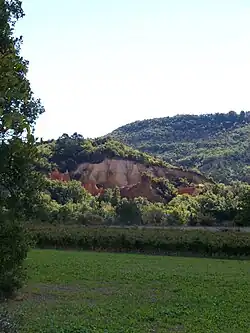 Rustrel est un village situé au nord d'Apt et au pied des monts de Vaucluse. Ses carrières d'ocre à ciel ouvert, pleinement exploitées autrefois, ont fait sa richesse et continuent par le biais du tourisme avec celles du « Colorado Provençal ». Ses sentiers en terre permettent de découvrir des falaises érodées comprenant plus de 20 teintes d'ocre[1], des cheminées de fée, etc. Elles datent du crétacé et sont composées principalement de sables ocreux, de sables blancs et de cuirasses ferrugineuses[2].