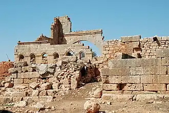 - ↑ Christine Strube, Baudekoration im Nordsyrischen Kalksteinmassiv. Band 1: Kapitell-, Tür- und Gesimsformen der Kirchen des 4. und 5. Jahrhunderts n. Chr. Philipp von Zabern, Mainz 1993, p. 159, doi:10.11588/diglit.71525