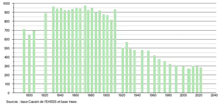 - ↑ Fiches Insee - Populations de référence de la commune pour les années 2006, 2007, 2008, 2009, 2010, 2011, 2012, 2013, 2014, 2015, 2016, 2017, 2018, 2019, 2020, 2021 et 2022.