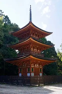 - Tō (pagode à trois niveaux) (1356), toit couvert d'écorce de cyprès du Japon(BCI)[5],[6]
