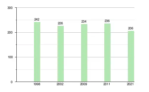 En 2021, le village de Rydlewo comptait 206 habitants, en diminution de −14,88 % par rapport à 1998[6]. En 2021, 64,6 % des habitants du village de Rydlewo étaient en âge de travailler (entre 18 et 64 ans pour les hommes et 18 et 59 ans pour les femmes). 16,5 % des habitants avaient moins de 18 ans et 18,9 % avaient l'âge légal de la retraite. Les personnes en âge de travailler représentaient 59,5 % de la population de la voïvodie de Couïavie-Poméranie et 59,5 % de la population de Pologne. Ainsi, le taux de dépendance démographique du village de Rydlewo est inférieur à celui de la voïvodie de Couïavie-Poméranie et inférieur à celui de la Pologne[7].