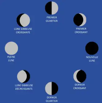 - ↑ Mariannehubert, Français : Les différentes phases de la Lune schématisées, (lire en ligne)