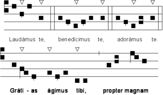 - ↑ Dom J. Gajard, Notions sur la rythmique grégorienne, Editions de Solesmes, (lire en ligne), p. 24, et Schola Saint Grégoire, Laus in Ecclesia, tome 1, Traditions Monastiques, , p. 107.