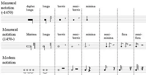 L'interprétation mensuraliste repose sur une certaine réalité : au début de la notation musicale moderne, les signes neumatiques « carrés » (virga, punctum et punctum inclinatum) auraient été utilisés pour indiquer des différences de durée.