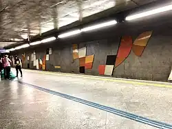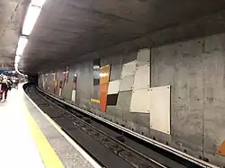 - "Sem Título (composé de deux panneaux, voie 1 et 2)" (panneau), Odiléa Toscano, plaques découpées et peintes (1990), peintures synthétiques et acryliques et plaques métalliques (350 m² - les 2 panneaux), installées sur la plateforme, murs des voies 1 et 2[4].