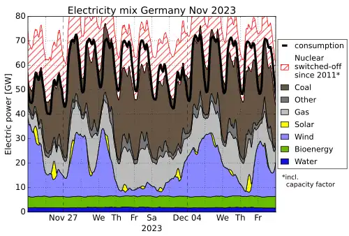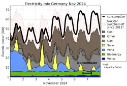 - ↑ (en) Production publique nette d'électricité en Allemagne en novembre 2024, Energy-Charts, Fraunhofer ISE.