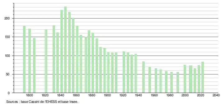 - ↑ Fiches Insee - Populations de référence de la commune pour les années 2006, 2007, 2008, 2009, 2010, 2011, 2012, 2013, 2014, 2015, 2016, 2017, 2018, 2019, 2020, 2021 et 2022.