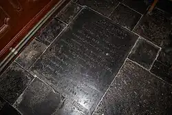 Sebastien de Tramasure en son temps Capitaine des Bourgeois qui en Lan 1583 abatit du rampart hollandois et englois ennemis lors de notre foy, trespassa le 8 du mois de mars 1634 et Catherine Baghe sa troisième femme laquelle trespassa 28 septembre 1624 environ les XI heures du matin.