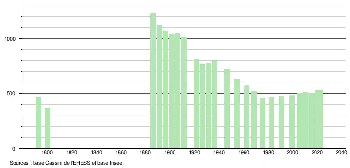 - ↑ Fiches Insee - Populations de référence de la commune pour les années 2006, 2007, 2008, 2009, 2010, 2011, 2012, 2013, 2014, 2015, 2016, 2017, 2018, 2019, 2020, 2021 et 2022.