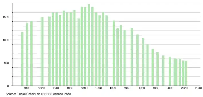 - ↑ Fiches Insee - Populations de référence de la commune pour les années 2006, 2007, 2008, 2009, 2010, 2011, 2012, 2013, 2014, 2015, 2016, 2017, 2018, 2019, 2020, 2021 et 2022.
