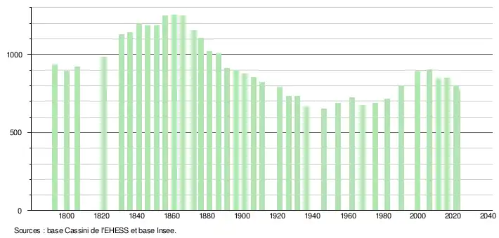 - ↑ Fiches Insee - Populations de référence de la commune pour les années 2006, 2007, 2008, 2009, 2010, 2011, 2012, 2013, 2014, 2015, 2016, 2017, 2018, 2019, 2020, 2021 et 2022.