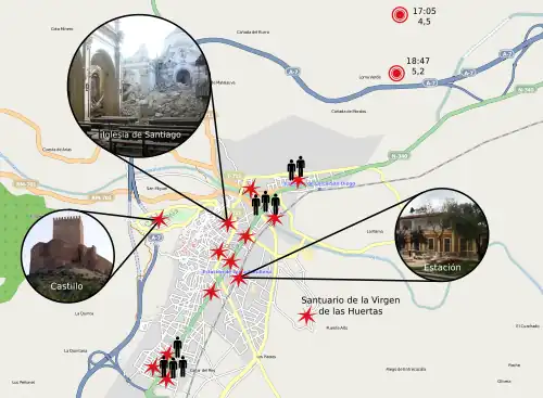 - ↑ (es) « Dos terremotos sacuden Lorca y causan ocho muertos • ELPAÍS.com », sur Elpais.com (consulté le )