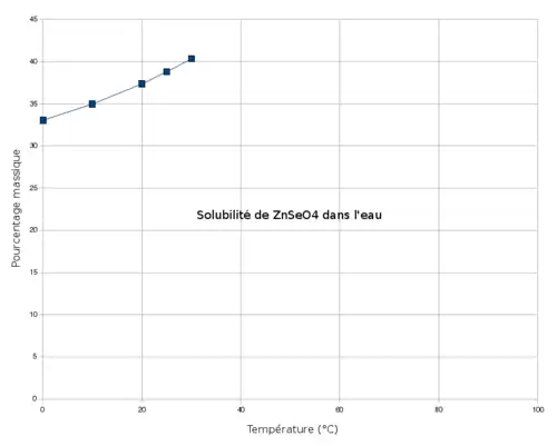 | Masse molaire[1] | 208,34 ± 0,05 g/mol O 30,72 %, Se 37,9 %, Zn 31,39 %, |
