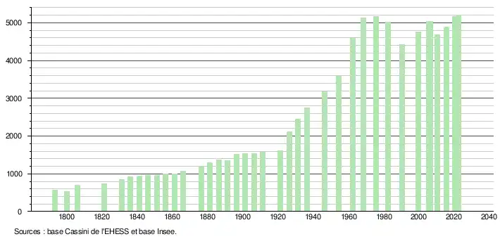 - ↑ Population municipale de référence en vigueur au 1er janvier 2025, millésimée 2022, définie dans les limites territoriales en vigueur au 1er janvier 2024, date de référence statistique : 1er janvier 2022.