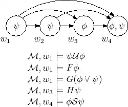 Cette relation d'accessibilité R correspond à la modalité universelle G, signifiant que sera vrai à tout instant du futur. Si est vraie à un monde t, on vérifie bien que est vraie dans tous les mondes accessibles depuis t, c'est-à-dire à tous les instants postérieurs à t. La modalité existentielle associée est F, désignant le fait qu'il existe un instant futur où la formule considérée sera vraie. Formellement, la sémantique de ces opérateurs s'exprime comme suit :