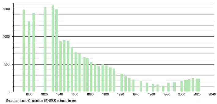 - ↑ Fiches Insee - Populations de référence de la commune pour les années 2006, 2007, 2008, 2009, 2010, 2011, 2012, 2013, 2014, 2015, 2016, 2017, 2018, 2019, 2020, 2021 et 2022.